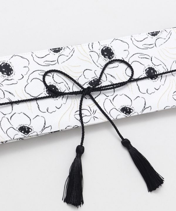 春の野原に咲く可愛らしい花々をモチーフにした、巻いて紐を結ぶだけの簡単帯ベルト。