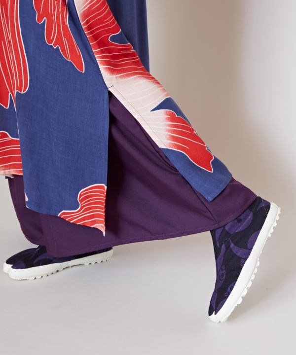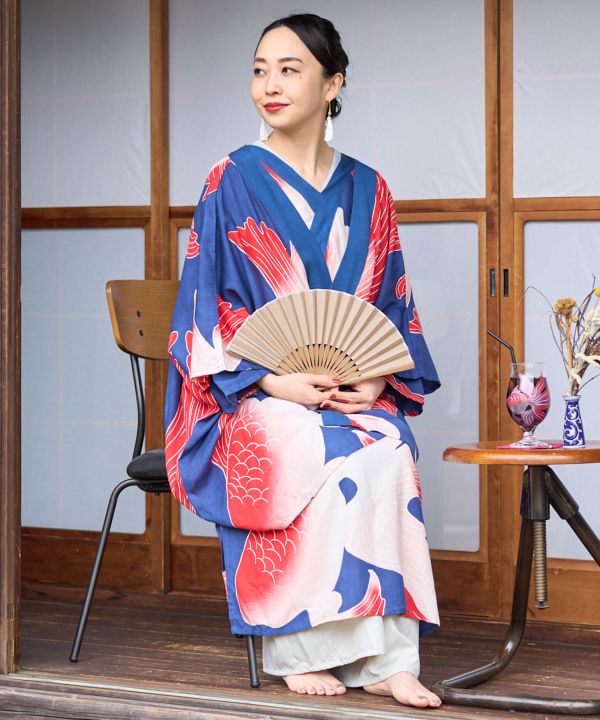 大きめな袖が特徴的で、ゆかたにならった型が一枚羽織るだけで気軽に和装も楽しめます。