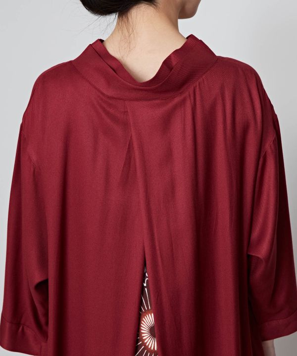 まるで着物の重ねのような衿は、一枚着るだけで和の装いに。