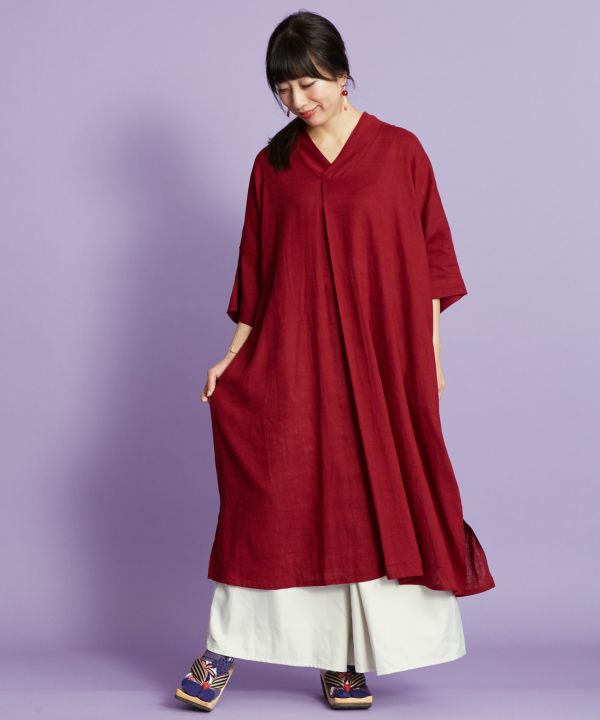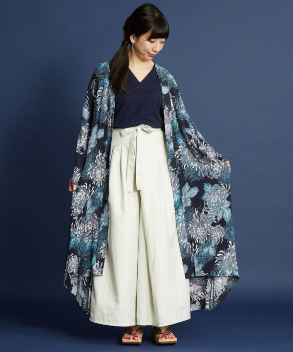 大きく合わさるタックが、まるで袴のようなシルエットのワイドパンツ。