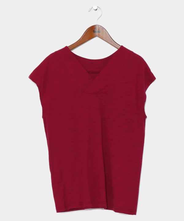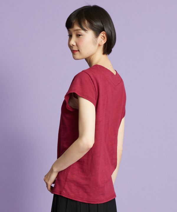 癖のない色合いのトップスは、一枚で着るのにはもちろん、ワンピースに合わせても着られます。
