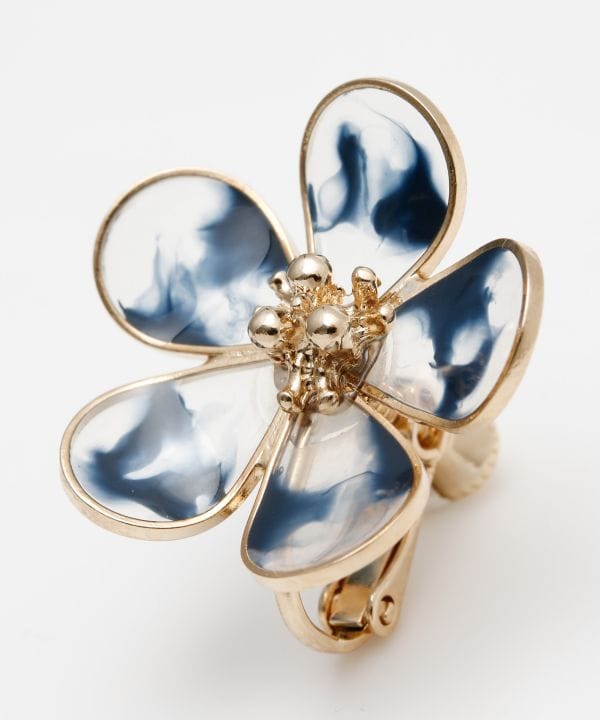 水彩が滲んだような花びらのお花のイヤリング。